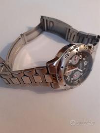 Vendo cronografo day-date al quarzo marca Capital usato pochissimo. Movimento Miyota, diametro orologio 36 mm. fondello a vite, cinturino e cassa in acciaio inox, chiusura deployante, impermeabile 50 mt. - Ref. T332, batteria nuova. L’orologio è ben conservato, con scatola originale Capital, senza segni evidenti di usura. Non spedisco, consegno a mano, no perditempo. L’orologio si trova a Mestre-Ve. Prezzo richiesto 35 €.