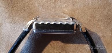 Altre foto disponibili. Orologio Gruen Tuxedo Smoking Art Deco anno 1942 diamond dial, square cioccolatone. Quadrante coevo con undici diamanti veri da 0,01 carati alle ore, di cui tre incastonati al 3-9-12. Lancettina secondi al sei, lancette o sfere modello Lozenge. Cassa con motivi ondulati a sinistra/destra, laminata in oro dieci carati (10K/0.420), fondello inox Rex W. CCC (stainless back), entrambi intatti come il vetro ovale, che segue il curved delle anse rocaille. Movimento 315, carica manuale da 15 rubini collezione Guild three ADJ., numero 186460. Una delle marche preferite da James Bond. Preciso in tutte le sue funzioni. Misura mm. 26 esclusa corona x mm. 38 anse comprese. Cinturino nuovo in pelle mm. 16 alle anse con gancio dorato ardiglione, per polsi circonferenza da cm. 18 a cm. 22. Prezzo non trattabile, grazie. Spedizione entro un giorno lavorativo da arrivo bonifico, in doppia busta imbottita raccomandata A.R. euro 10, con invio foto ricevuta e numero per la tracciabilita'. Oppure Tuttosubito o consegna di persona a Piacenza centro. Grazie
