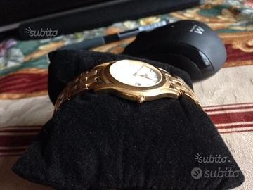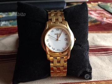 Vendo orologio maschile Gucci originale, cassa e cinturino in acciaio placcati entrambi in oro giallo, quadrante bianco con numeri romani, movimento al quarzo e cinturino con chiusura deployant fermaglio (vedere foto).Usato anche se in ottime condizioni, purtroppo sprovvisto della sua scatola originale e della garanzia, avendolo ricevuto in regalo non possiedo nessuno scontrino. Vendo causa inutilizzo, non esitate a contattarmi per ulteriori dettagli e/o foto anche se essendo custodito in una cassetta di sicurezza necessiterò di un paio di giorni per fornirvi altre foto. Possibilità di pagamento con paypal facendo un trasferimento oppure pagamento in contanti se ritirato personalmente. Possibilità di ritiro personale a Sassuolo (MO) Restano a carico dell'acquirente le spese di spedizione così come all'acquirente rimangono le responsabilità in caso si richieda la spedizione non assicurata dell'oggetto in caso di mancata ricezione. La spedizione si effettuerà solo a pagamento ricevuto.Non si effettuano scambi di nessun genere. Verranno ignorate mail di perditempo e di chiunque tenti di truffare dati personali per altri scopi.