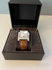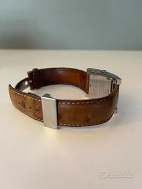 Orologio Gucci Originale, usato, quadrante acciaio con fondo bianco con data. Cinturino pelle struzzo marrone chiaro, funzionante con batteria.