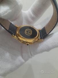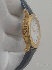 Orologio Gucci 7200 M Gold cassa e fondello placcato in oro 18 kt Orologio per uomo misura cassa 34 mm escluso la corona ) con corona di zaffiro nero movimento quarzo colore quadrante bianco numeri romani Cristallo vetro zaffiro chiusura materiale acciaio placcato oro 18 kt con doppio cinturino uno originale colore marrone più un nuovo cinturino nuovo ANALLERGICO mai indossato colore celeste vendo per 240 euro ritiro solo a mano