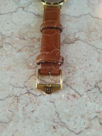 Vendo splendido orologioGucci originale, modello iconico dellaSerie 3000L(vintage anni '90), un pezzo classico ed elegante cercato dai collezionisti. Modello: Gucci 3000L (Donna / Unisex 26mm). Cassa: Placcata oro giallo con numeri romani incisi sulla lunetta. Quadrante: Color oro/champagne con logo Gucci e scritta "Swiss Made". Fondello: Originale con stemma Gucci e numero di serie inciso. Fibbia: RARA - Fibbia originale Gucci placcata oro con logo doppia "G" (punto di forza per collezionisti). Movimento: Quarzo svizzero di alta precisione. Cinturino: In pelle marrone stampa coccodrillo (condizioni vintage, presenta segni di usura come da foto).