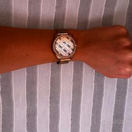 o Quadrante: Rosa con pattern logato Guess e contorno con strass brillanti