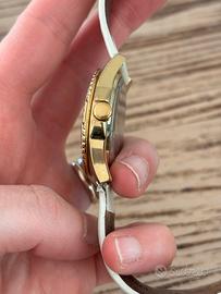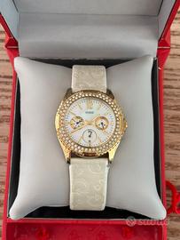 OROLOGIO GUESS DONNA CASSA LAMINATA ORO GIALLO CON ZIRCONI SU GHIERA; DATARIO CON SFERINI SUL QUADRANTE