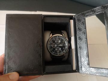Vendo orologio GUESS uomo, usato pochissime volte, pari a nuovo, anno 2009, modello w1353061, cinturino di pelle nero, cassa in acciaio inossidabile lucidato argento, diametro cassa 44, quadrante nero. Vendo per inutilizzo, consegna a mano o spedizione in tutta Italia (spedizione a parte), accetto tutti i tipi di pagamenti, grazie!