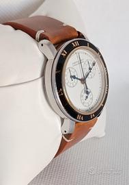 Orologio HAMILTON Lancaster "Piping Rock", ref. 8806 cronografo Flyback MOVIMENTO: Quarzo appena revisionato CASSA: Acciaio VETRO: Minerale DIAMETRO: 36 mm CINTURINO: Pelle After market QUADRANTE: Bianco DESCRIZIONE: Sfere delle ore blu stile retrò con doppia lancetta flyback per secondi e minuti. Corona con cabochon. NON SPEDISCO CON TUTTOSUBITO Per ulteriori info o foto potete contattarmi su WhatsApp al numero 3888903655
