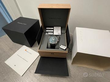 Vendo Hamilton Jazzmaster modello Power Reserve Auto referenza H32635731 a carica automatica calibro H-13 con 80 ore di riserva di carica cassa da 41mm vetro zaffiro l’orologio è nuovo mai indossato full set. Volendo posso valutare scambi o permute con orologi di mio interesse. Per la vendita non utilizzo TuttoSubito.