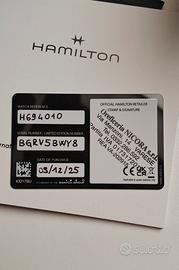 Orologio Hamilton da uomo, nuovo con garanzia di due anni e confezione originale. • cassa in acciaio inox • movimento al quarzo • vetro zaffiro • impermeabile fino a 5 bar • cinturino in tessuto con passanti in pelle • 38 mm • calibro F06.105 • colore blu notte • già funzionante