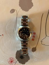 Vendo Hamilton Khaki Field Quartz 38 mm (acquistato nel 2015), movimento al quarzo con batteria, quadrante nero con datario, vetro zaffiro, cassa e bracciale in acciaio, impermeabile 50 m, completo di scatola originale, in ottime condizioni.