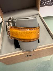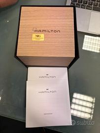 propongo in vendita questo Hamilton Spirit of Liberty, tutto originale, movimento automatico e riserva di ricarica da circa 60 ore , con cinturino in pelle di vitello con fibbia pieghevole. Marca: Hamilton Modello: Spirit of Liberty Referenza: H32416541 Carica: Automatico Materiale Cinturino: Pelle di vitello Materiale Cassa: Acciaio Diametro: 42 mm Impermeabile Vetro: Vetro Zaffiro CORREDO COMPLETO (scatola e documenti originali) Condizioni: In ottime condizioni come nuovo indossato 3 volte. Preferibilmente consegna a mano o bonifico istantaneo