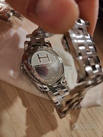 Vendo orologio da uomo al quarzo Hamilton Jazzmaster Gent con quadrante nero e bracciale in acciaio.