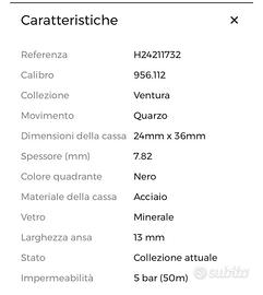 Vendo per inutilizzo orologio Hamilton collezione Ventura da donna.