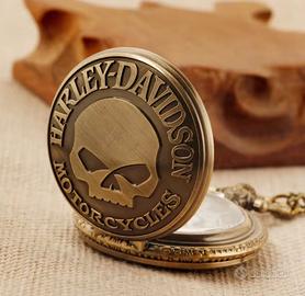 Orologio da taschino con ciondolo a forma di teschio Harley Davidson. - Design in bronzo anticato. - Catena inclusa.