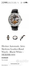 Orologio Heritor Aries con cinturino in pelle nera nuovo mai indossato con scatola originale e certificato di autenticità