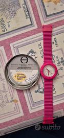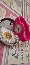 Orologio Hip Hop con cinturino fuxia in silicone, regolabile e intercambiabile. Indossato pochissime volte. Scatola originale.