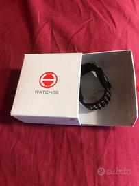 Cinturino in silicone nero con applicazione pietre swarovski.
