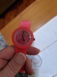 Orologio HIP HOP in gomma rosa a batteria. Quadrante rosa e lancette nere.