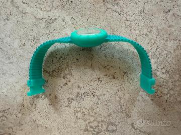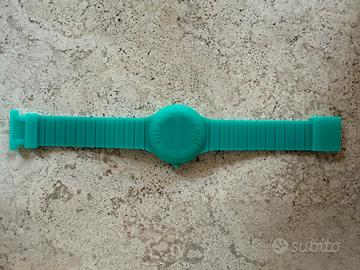 Orologio hip hop anni 2010 circa, in ottimo stato come da foto, usato pochissimo. Lunghezza totale del cinturino circa 17,5 cm. custodie intercambiabili, quella in dotazione è acquamarina come in foto. Batteria scarica da sostituire