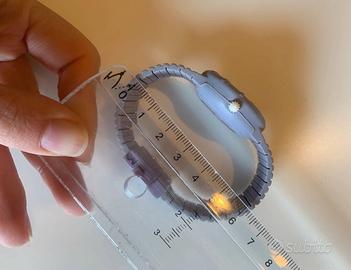 Orologio HipHop con tue cinturini (lilla e verde acqua); ottime condizioni unica pecca: la batteria è da cambiare;nelle ultime due foto potete vedere la misura del diametro; in caso si possono SOLO stringere. Con scatola originale. Il prezzo comprende gia entrambi i cinturini.