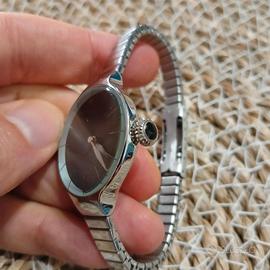 Elegante orologio Hoops con cassa da 30mm. - Quadrante nero con design a raggi. - Cinturino elastico in metallo argentato.