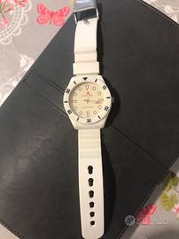 Vendo come nuovo orologio HOOPS modello Under Water, Ma indossato, cassa in resina bianca, resistente a 3 atmosfere,Quadrante bianco con indici, cinturino in silicone ,Possibilità di cambiare la ghiera di color arancione, chiusura Ardiglione in acciaio