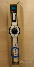 Vendo orologio da uomo marca Hoops modello UNDER WATER TOUCH 2479ME in silicone colorato bianco con ghiera aggiuntiva intercambiabile di colore blu. Il prodotto è ancora nella confezione originale con il cartellino e tutte le pellicole protettive.