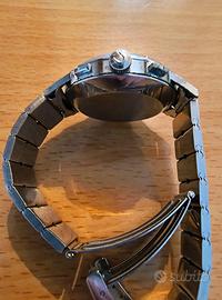 Orologio da polso unisex in acciaio "Universal Geneve" modello Uni-Compax anni '50, in buone condizioni, senza scatola. Con cronografo, movimento automatico, cinturino in acciaio a bracciale, chiusura a scatto, calibro 140, 17 jewels, cassa da 35.