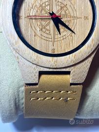 Orologio in legno con bussola incisa sopra a laser movimento quarzo