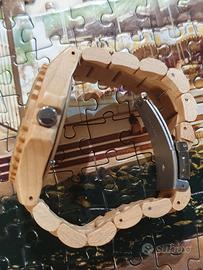 orologio con cassa e cinturino in legno naturale. Uwood cassa da 45mm al quarzo batteria Sr626sw Sony