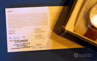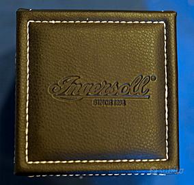 Orologio,Ingersoll "Blackfeet" IN 1603 CR meccanico a carica manuale, acquistato a Vicenza nel 2007. Calibro 250, completo di scatola e documenti. Diametro cassa senza corona 47 mm, acciaio satinato, larghezza ansa 22 mm, altezza 10 mm, vetro minerale, fondello in acciaio inossidabile con "finestra di visualizzazione", avvitato, fibbia ad ardiglione con logo Ingersoll, corona grande e facile da impugnare - funzioni: ore, minuti, secondi decentrati a ore 9, resistente all'acqua 3 ATM (meglio toglierlo sotto la doccia), riserva di carica di circa 44 ore Vendo per sfoltimento collezione Consegna ESCLUSIVAMENTE a mano