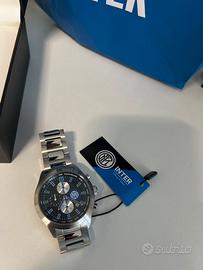 Orologio da polso inter in acciaio con fondo blu e logo inter