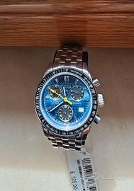 Orologio Invicta etanche crono al quarzo uomo nuovo mai indossato, con scatola non originale. Cassa mm 37 e cinturino in acciaio lucido e satinato . Chiusura cinturino a scomparsa e fondo WR 10 atm serrato a vite. Corona a pressione e ghiera fissa nera con numeri. Quadrante blu chiaro