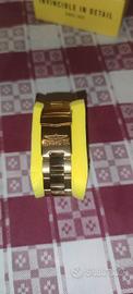 come nuovo color oro molto elegante,completo di scatola e maglie automatico quadrante nero cassa 40mm, in perfette condizioni estetiche e funzionali,preferisco scambio a mano su Roma sennò posso spedire a 5 euro prezzo non trattabile
