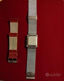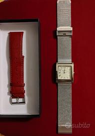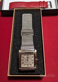 Orologio Jabal/Fossil con 2 cinturini è analogico in acciaio Jabal gruppo Fossil completo di scatolino e 2 cinturini: 1 maglia Milano in acciaio con sganci rapidi mai indossato (vedi foto retro), il secondo in vera pelle di colore rosso utilizzato pochissimo, il tutto completo di scatolino e batteria appena sostituita. Vendo ad euro 35,00 è un vero regalo se pensate solo a quanto costano i cinturini di ricambio. Orologio con quadrante quadrato con indosso sia femminile con entrami i cinturini oppure maschile con cinturino a in acciaio, pertanto essendo molto versatile lo ritengo UNISEX.