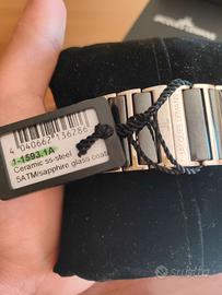Orologio con cassa quadrata in acciaio inossidabile massiccio, diametro cassa: 28x39mm. Orologio con indicazione analogica con indici, quadrante a 2 strati e con cinturino acciaio inossidabile/HIgh-Tech in ceramica nero/argento. Lunghezza ansa e lunghezza totale: 210mm. Orologio con movimento VJ34A e resistenza all'acqua 5 ATM.