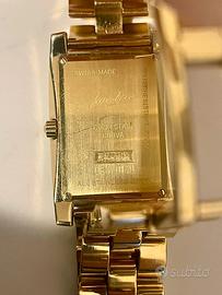 OROLOGIO QUARZO MARCATO JEAN D'EVE MADE IN SUISSE NUOVO MAI INDOSSATO CON CINTURINO DORATO PAGATO 980 EURO ANCORA SUL SITO ORIGINALE CON MAGLIE PERFETTE IN METALLO DORATO MODELLO CURVA DUE FUSA ORARIO IMPERMEABILE MAGLIA STUPENDA CONFORTEVOLE VERO AFFARE PILA NUOVA