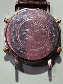 SPLENDIDO CRONOGRAFO JEAN PAUL MONET. LUNETTA ORO 18 k. CONFEZIONE ORIGINALE UN PO’ DANNEGGIATA.
