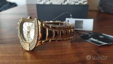 Orologio JUST CAVALLI color oro da donna NUOVO, con etichette e plastica protettiva, libretto e confezione originali. Mai usato, nuovo. In negozio vale 189€