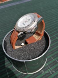Orologio Kappa con cinturino in pelle. Cassa in acciaio, quadrante bianco, diametro 4cm.