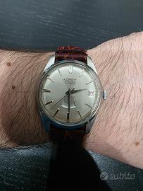 vendo raro orologio Komet automatico in ottime condizioni con funzione data e giorno. Calibro Felsa 4009. Cinturino e fibbia generici nuovi. Cassa 35mm, minimi segni del tempo su vetrino in plexy