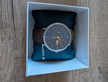 Orologio Lacoste Moon al quarzo con quadrante blu e cinturino marrone in pelle. Cassa 40mm. L'orologio si presenta in ottime condizioni con leggerissimi segni di usura del cinturino e cassa e vetro ancora perfetti.