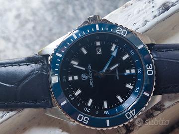 Orologio Lacz Denton GMT ricondizionato, in discrete condizioni estetiche, ma perfettamente funzionante.Caratteristiche : cassa in acciaio inox 40 mm, movimento automatico giapponese, con funzione GMT appena ricontrollato e perfettamente funzionante, water resistent 20 ATM. L'orologio è dotato di un cinturino generico in pelle, originariamente montava un cinturino in acciaio inox di cui non dispongo , per ciò che riguarda la ghiera, originariamente, girava in maniera unidirezionale, mentre, allo stato attuale, è stata adattata in modo fisso in quanto si era rotta, motivo per cui non svolge alcuna funzione di misurazione, ma rappresenta soltanto una caratteristica estetica, per quanto riguarda il movimento, esso , è stato controllato da un orologiaio di fiducia, e funziona perfettamente. Vendo con formula visto e piaciuto e conseguente esclusione di garanzia ad euro 25,00, non uso tuttosubito solo consegna a mano zona Lodi/Pavia, no altre modalità di transazione. Acquisto orologi subacquei Seiko automatici ottima valutazione pagamento immediato. Grazie