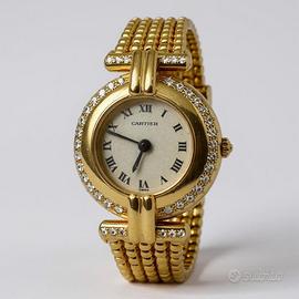 Orologio da donna in oro giallo 750/1000 Cartier Colisee referenza 881092 anni 90 cassa 24 mm quadrante bianco indici romani lunetta liscia con diamanti esterni bracciale a maglie in oro gialla chiusura deployante a scomparsa movimento al quarzo certificato di garanzia della nostra gioielleria possibilità di finanziamento spedizione tracciata e assicurata