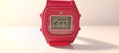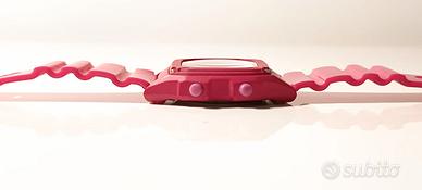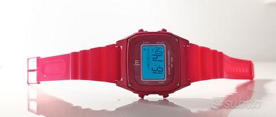 Orologio digitale gomma, perfetto mai indossato, funzioni: ora e data, cronometro, retroilluminazione notturna, leggero estivo. Batteria appena sostituita, cassa impermeabile 3 ATM (buona tenuta agli spruzzi e al nuoto ma non per immersioni in profondità).