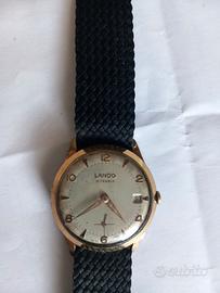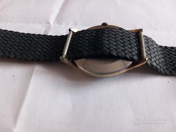 orologio swiss made anni 50 usato con carica manuale ancora funzionante, placcato con scoloritura sul bordo. Cinturino nero forse non originale. Marca Svizzera Lanco. Da collezione.
