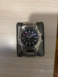 Orologio da uomo Zancan dal design sportivo ed elegante, con cassa in acciaio inox e ghiera con indicazioni cardinali. Quadrante nero testurizzato con dettagli silver, indici a bastone e datario a ore 6. Bracciale in acciaio satinato/lucido con chiusura deployante. Movimento al quarzo preciso e affidabile. Un accessorio perfetto per chi cerca uno stile deciso, moderno e distintivo. Ideale sia per il tempo libero che per le occasioni formali.