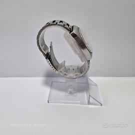L'orologio si trova in ottimo stato, il quadrante e la cassa da 35mm presentano lievi segni d'usura. È braccialato con cinturino in acciaio d'epoca. Lieve appannatura al vetro a sinistra
