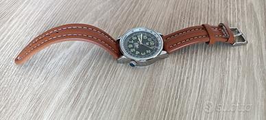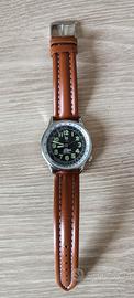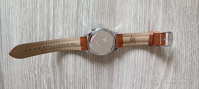 Cassa 40 mm, vetro minerale, movimento al quarzo,WR, cinturino originale in vera pelle marrone,indici luminescenti, nuovo con ancora pellicole protettive , batteria nuova