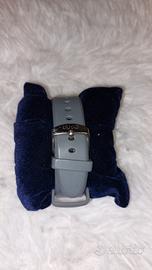Orologio Liu- Jo della linea Luxury con quadrante in argento e bianco, movimento al quarzo, cinturino in silicone grigio con chiusura a farfalla. Resistenza all’acqua di 5 Atm.
