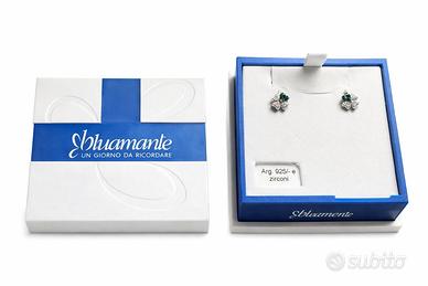 Vendo inoltre orecchini in argento 925 con zirconi verde smeraldo, anch’essi mai indossati, marca Blu Amante, al prezzo di €40.